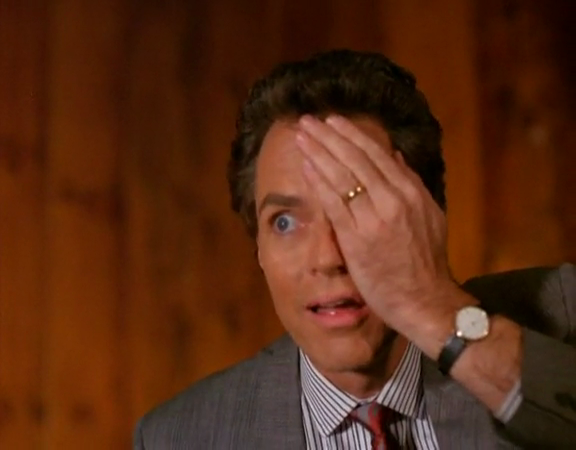 Ben informs Jerry that he’s planned a big to-do, “a gala reception… all of Twin Peaks’ best and brightest” for the investors, to be followed, if necessary, by a little trip up to “you know where”, while giving the one-eyed sign.